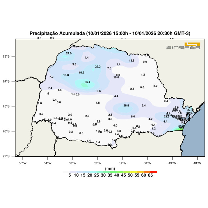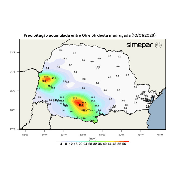 . General Carneiro (Simepar): 52,0 mm, sendo 37,6 mm entre 1h30 e 2h30;