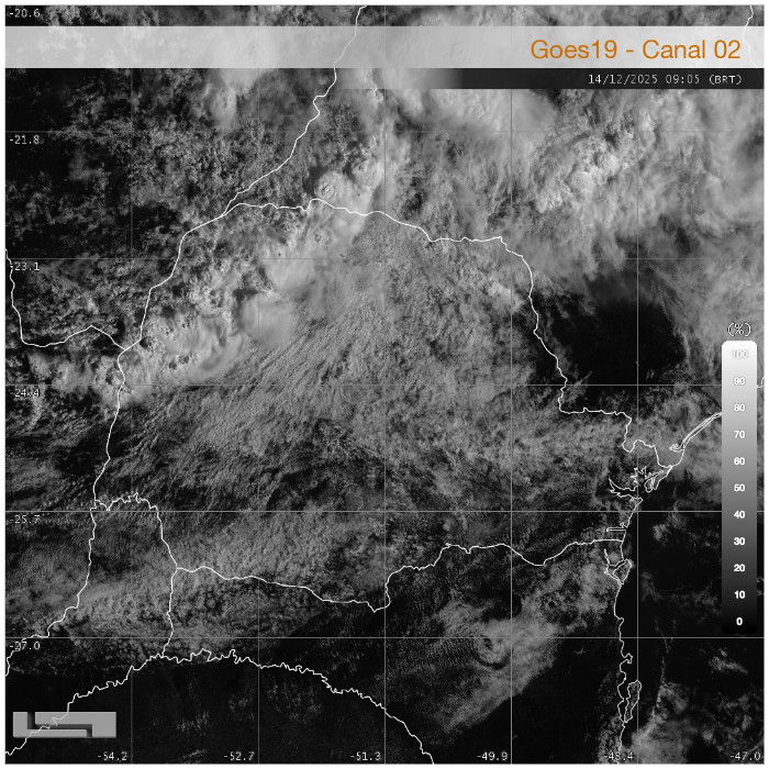 O domingo inicia com ocorrência de pancadas de chuva no norte do estado, as quais se estenderam ao longo de toda a madrugada. No momento, esses eventos apresentam baixo risco associado, caracterizando-se como precipitações de fraca intensidade, com registros pontuais de intensidade moderada.