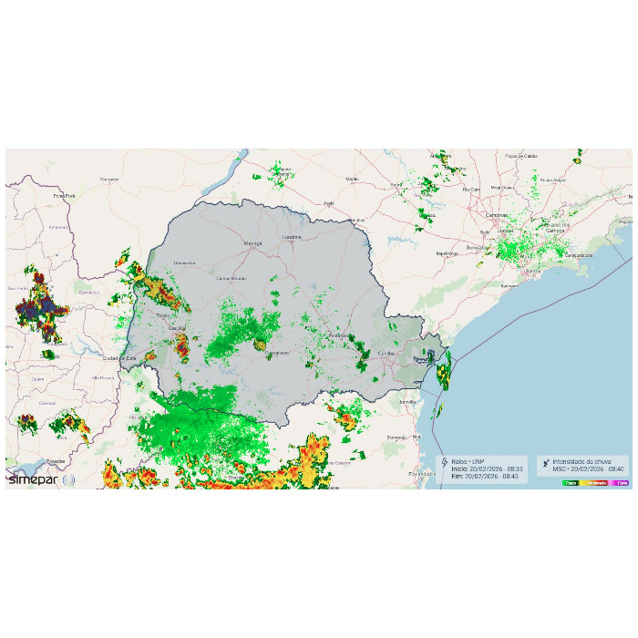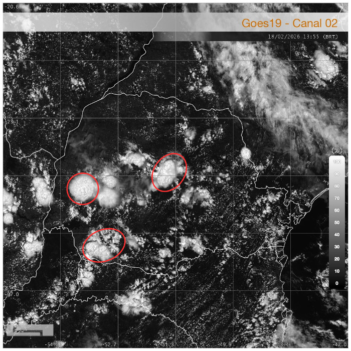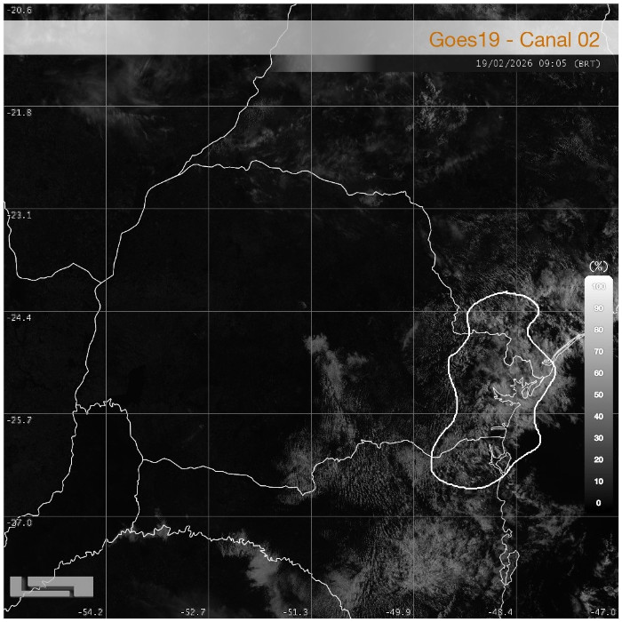 Enquanto no Paraná o predomínio é de tempo estável com variação de nuvens, excetuando o litoral que ainda registra pancadas de chuva, o Centro-Leste da Argentina e o Uruguai enfrentam fortes tempestades. O deslocamento de um cavado meteorológico em altitude (sistema que promove queda de pressão em superfície e favorece a ocorrência de tempestades) somado com a oferta de calor e umidade deixa o ambiente altamente instável entre a Argentina e o Rio Grande do Sul. Desde a última noite, tempestades severas com ventos fortes foram registradas nos países que fazem fronteira com o RS, as quais agora avançam em direção ao estado gaúcho com elevado risco para vendavais e queda de granizo, além de chuva intensa acompanhada de muitos raios.