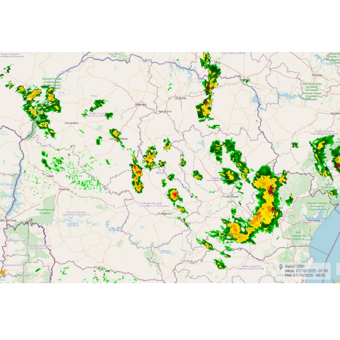 Com o avanço da frente fria pelo oceano, na altura do Paraná, as chuvas retornaram ao estado nesta segunda-feira, com registros de temporais isolados no interior, e chuva mais fraca no sul e leste. Em geral, da tarde para a noite foram registrados baixos acumulados de chuva nessas regiões, ultrapassando a marca dos 10 mm apenas em General Carneiro (INMET). Na madrugada, foram registrados temporais em São João do Caiuá, na faixa norte, e também um aumento das instabilidades no Norte Pioneiro, Campos Gerais e faixa leste (RMC/litoral), com pancadas de chuva acompanhadas de raios e trovoadas. No momento, a condição de instabilidade persiste nas mesmas regiões e deve se prolongar ao longo do dia.