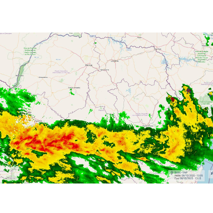 Numa configuração meteorológica favorável à ocorrência de chuva persistente em toda a metade sul do estado, a quinta-feira tem sua madrugada marcada por chuva de fraca intensidade, em geral, com algumas pancadas isoladas de moderada intensidade. Nas últimas horas, as instabilidades voltaram a ganhar força de forma pontual, com registro de raios e trovoadas no oeste, sudoeste e centro-sul. Chove também no sudeste, na RMC e no litoral, com menor intensidade. Os ventos que sopram do oceano através da circulação do sistema de alta pressão posicionado na altura do Rio Grande do Sul, e o gradiente de temperatura, favorecerem aumento dos ventos em todas as regiões, com destaque para o norte pioneiro, onde Santo Antônio da Platina registrou rajadas de vento de até 64 km/h. A chuva prossegue nas próximas horas nas regiões citadas, e o ar frio domina em especial no sul e leste.