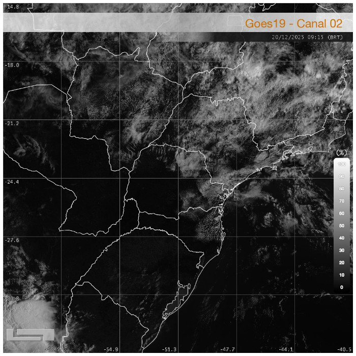 Na manhã de sábado, predomina a estabilidade atmosférica em todo o estado. No setor oeste, observa-se ausência de nuvens, garantindo predominância de sol e rápida elevação das temperaturas. No setor leste, a nebulosidade apresenta tendência de dissipação, permitindo que o dia seja estável em todas as regiões do estado.