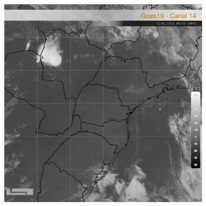 O sábado amanheceu com condições atmosféricas estáveis, apresentando pouca nebulosidade, concentrada principalmente sobre o setor leste, e predomínio de céu aberto. Até o momento, não há registro de ocorrência de chuvas em nenhuma região do estado. A partir do período da tarde, o cenário tende a se modificar, com a possibilidade de formação de pancadas de chuva pontuais.