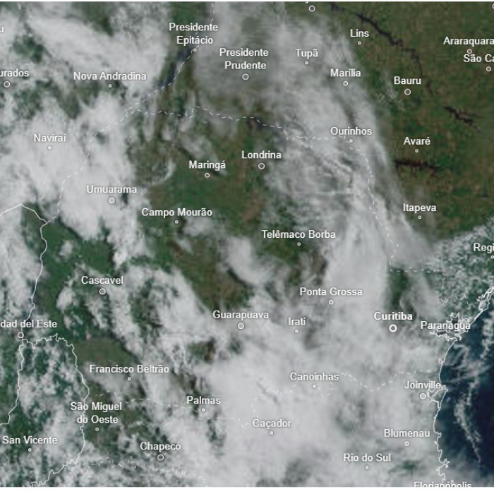 A Linha de Instabilidades que se deslocava durante a tarde entre o Paraguai, Nordeste da Argentina e o Rio Grande do Sul, agora se aproxima do Paraná, pela região de Foz do Iguaçu. Sistema segue intenso sobre o centro-norte do Paraguai, e com aspecto mais desorganizado na região da tríplice fronteira. Nas próximas horas, chuva fraca a moderada com alguns raios é esperada no extremo oeste e sudoeste do estado. Este sistema não deve avançar para as demais regiões paranaenses, onde os índices de instabilidade seguem baixos. O abafamento é intenso no Oeste e Noroeste do Paraná, em função do aquecimento diurno somado ao aumento da nebulosidade nas últimas horas. Em contraste, no Leste, Campos Gerais e Centro-Sul, temperaturas amenas e aumento das nuvens em função da circulação marítima.