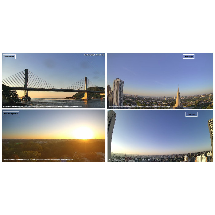 Sábado amanhece com céu claro em praticamente todo o Paraná. Satélites meteorológicos indicam presença de nevoeiros apenas ao longo dos rios Iguaçu (Centro-Sul) e Ivaí e Tibagi (Norte), mas que perdem força rapidamente. Em Guarapuava (distrito de Entre Rios) as temperaturas mínimas ficaram na casa dos 12°C.